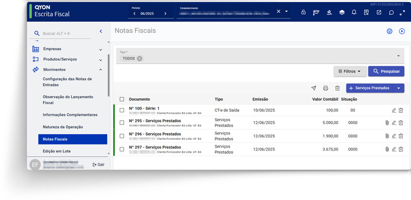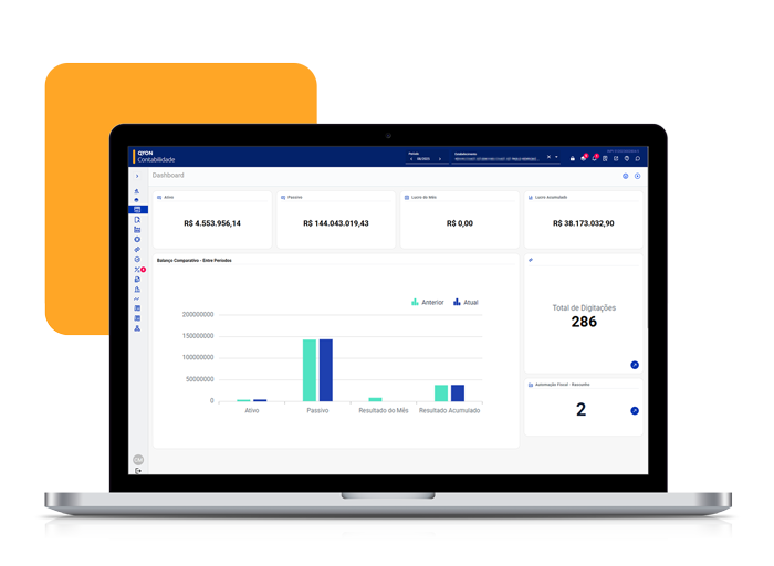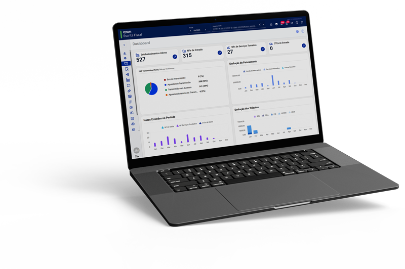 O QYON conecta os módulos Fiscal e Contábil de forma automática, eliminando importações manuais. Assim, os dados são transmitidos com total segurança e sincronização, garantindo agilidade e precisão na rotina contábil.