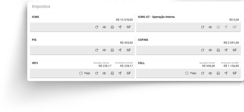 O cálculo de todos os tributos é centralizado em um único painel, permitindo conferência rápida e emissão de guias de pagamento de forma ágil e segura.