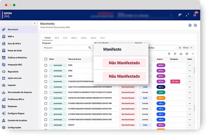 Integração automática: a partir da instalação, todos os documentos emitidos já ficam disponíveis direto no QYON XML.